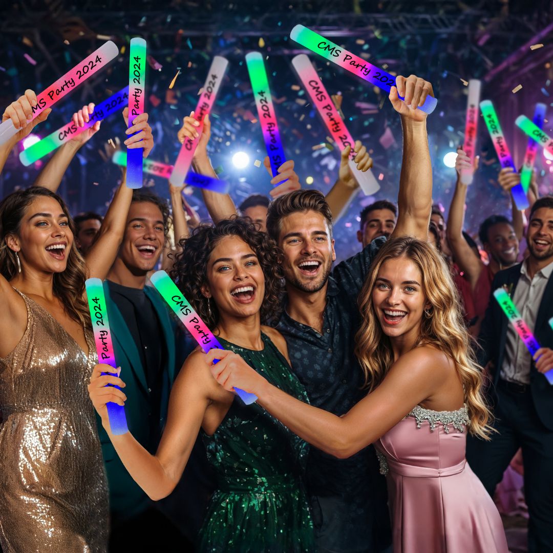 Fully Customised Party Glow Sticks: Any text such as Name, Date, Hashtag or Company name including logos are printed as per your request.